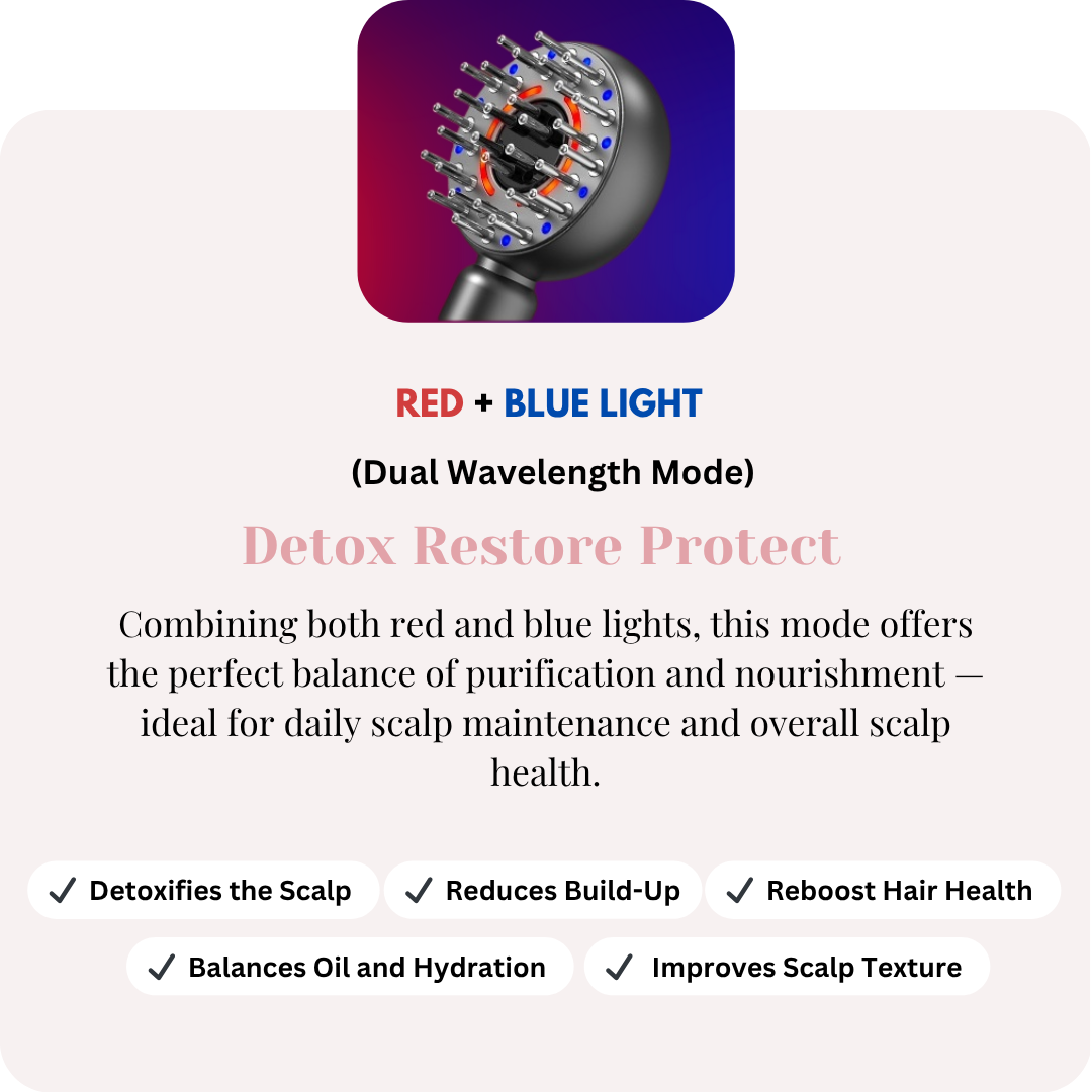 Red + Blue Light Mode: Combines both benefits for balanced scalp care.