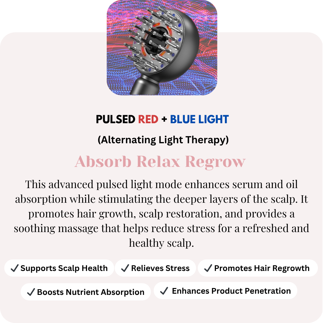 Alternating Light Mode: Enhances nutrient absorption, reduces buildup, and eases scalp tension.