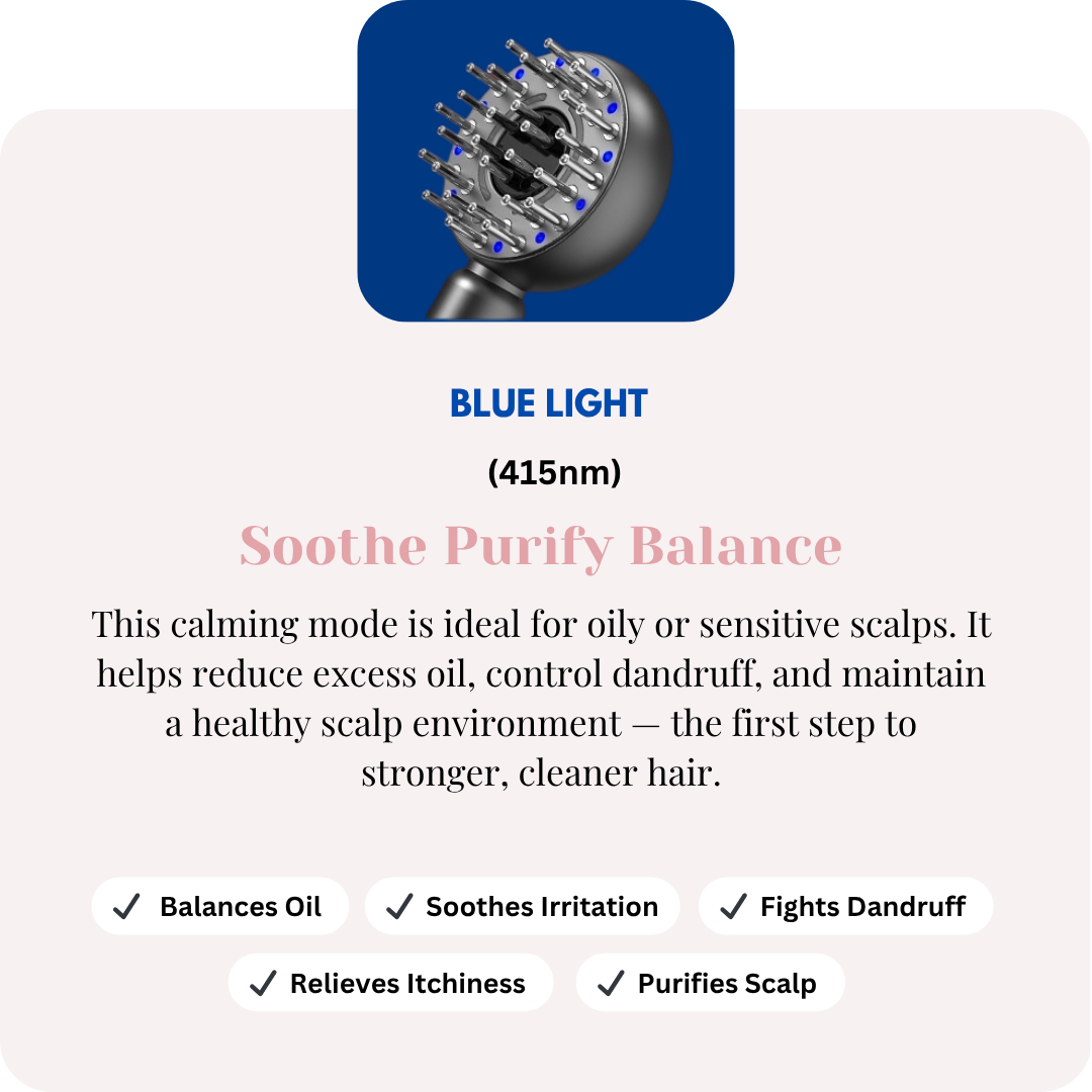 Blue Light Mode: Soothes irritation, helps control oil, and supports a flake-free scalp.
