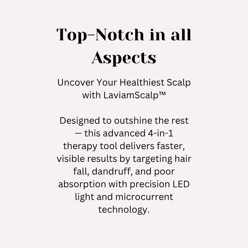 LaviamScalp™ is a 4-in-1 LED Hair & Scalp Massager designed to transform your hair care routine. It combines LED light therapy, EMS microcurrent, high-frequency vibration, and a smart liquid dispensing system to target common scalp concerns like hair thinning, dandruff, and excess oil.