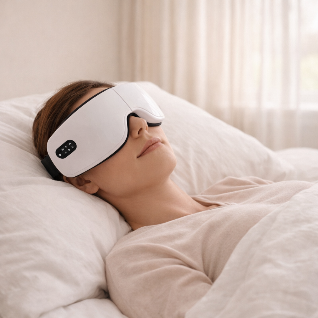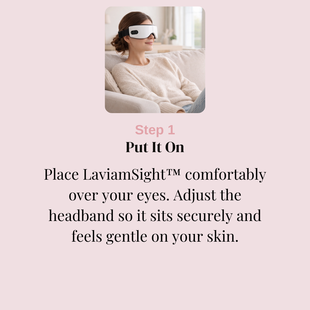 LaviamSight™ is an at-home heated eye massager designed to help your eyes feel relaxed and refreshed. It combines soothing warmth and gentle vibration to support everyday eye comfort after long hours of screen time.