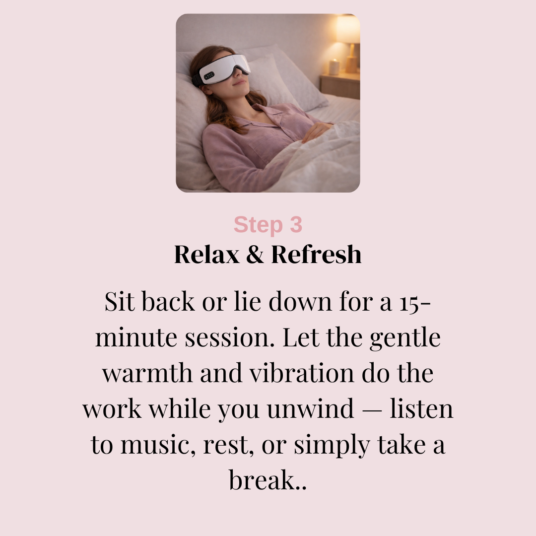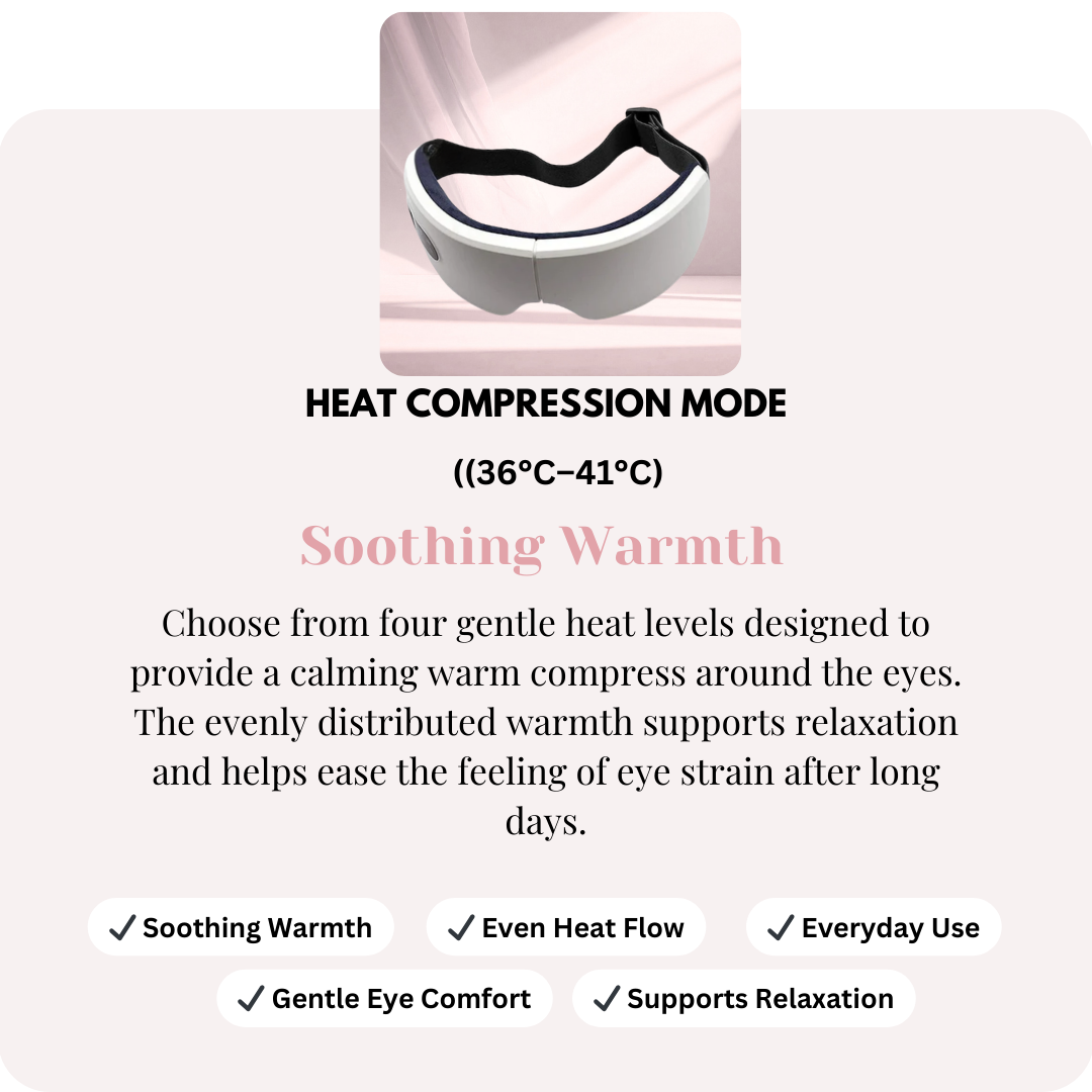A touch of warmth and vibration helps your eyes unwind effortlessly.
