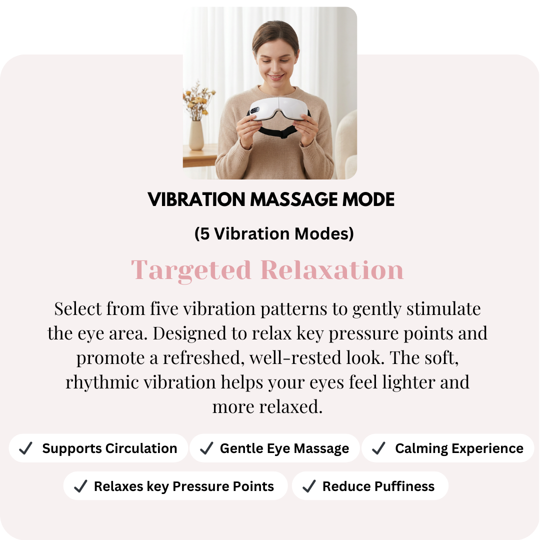 Vibration Massage Modes: Gentle vibration helps relax the eye area and key pressure points.