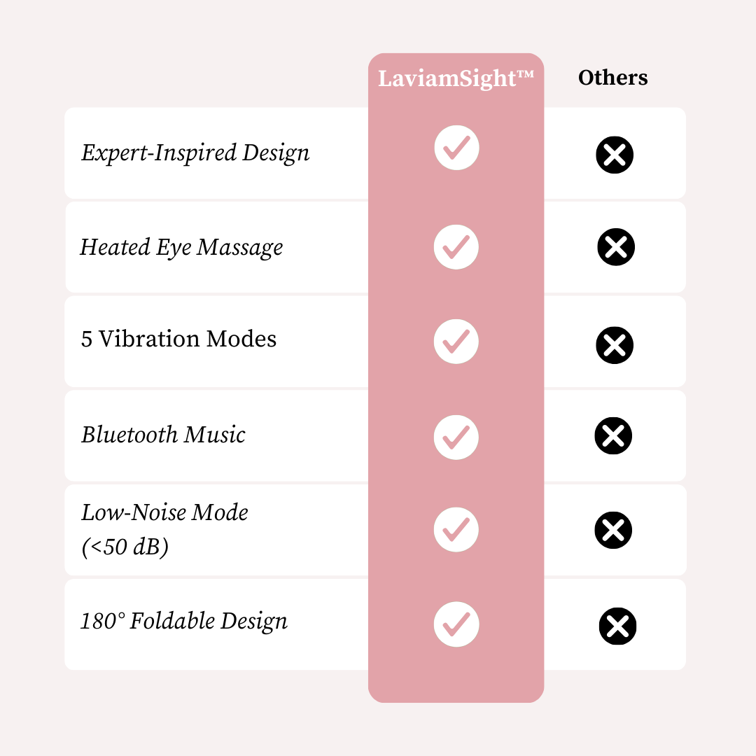 LaviamSight™ combines soothing warmth, gentle vibration massage, and smart relaxation features to support everyday eye comfort.