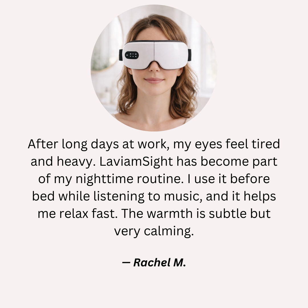 “Your eyes deserve a moment of care — LaviamSight™ makes relaxation simple and effortless.”