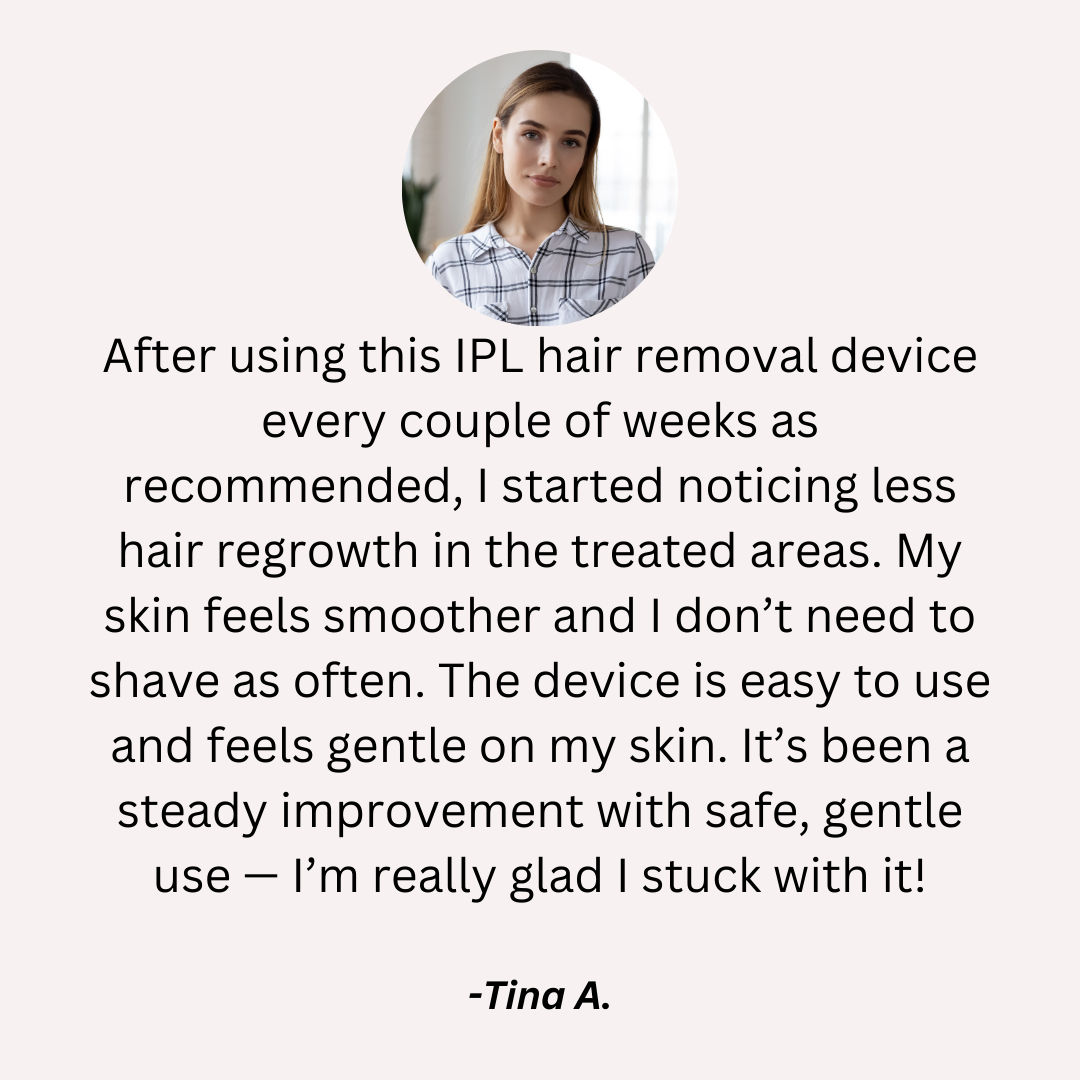 With IPL technology, adjustable intensity levels, and dual flash modes, it offers a gentle, mess-free alternative to shaving or waxing — helping you enjoy smoother-looking skin over time.