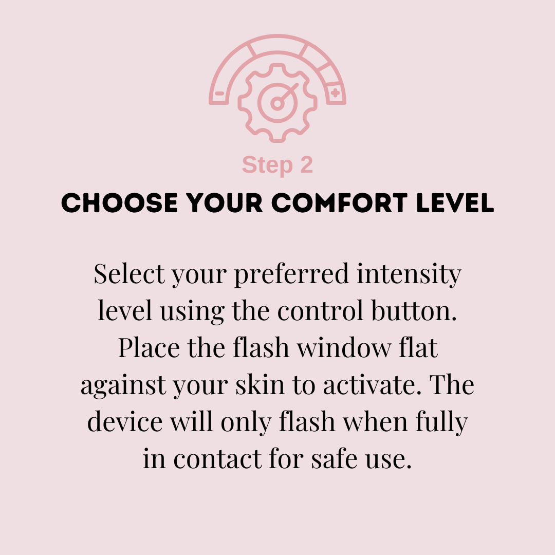 LaviamSilk™ is designed for gentle, at-home cosmetic use. With adjustable intensity levels and two flash modes, you can choose the setting that feels most comfortable. We recommend starting on the lowest setting and gradually increasing as you get used to the device.