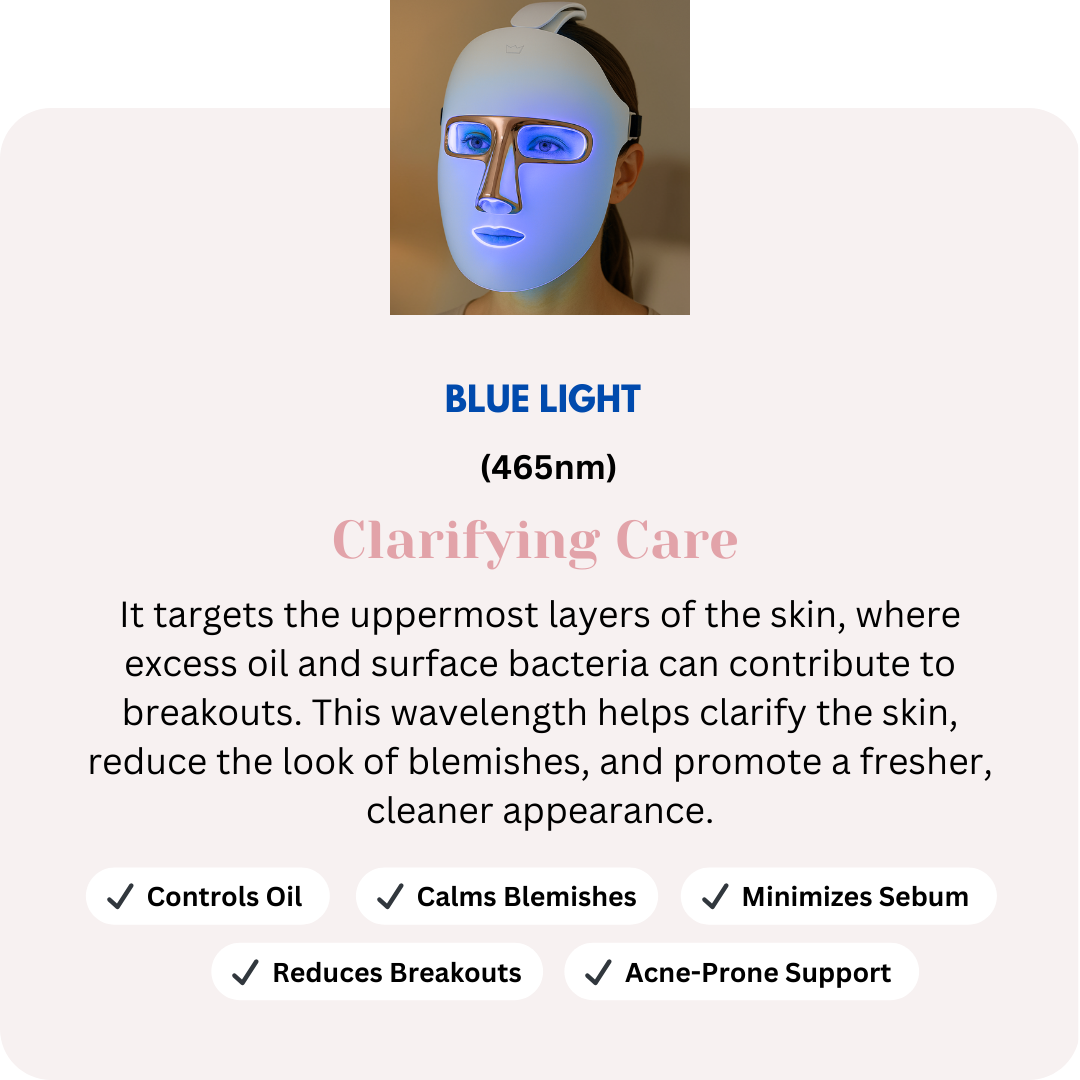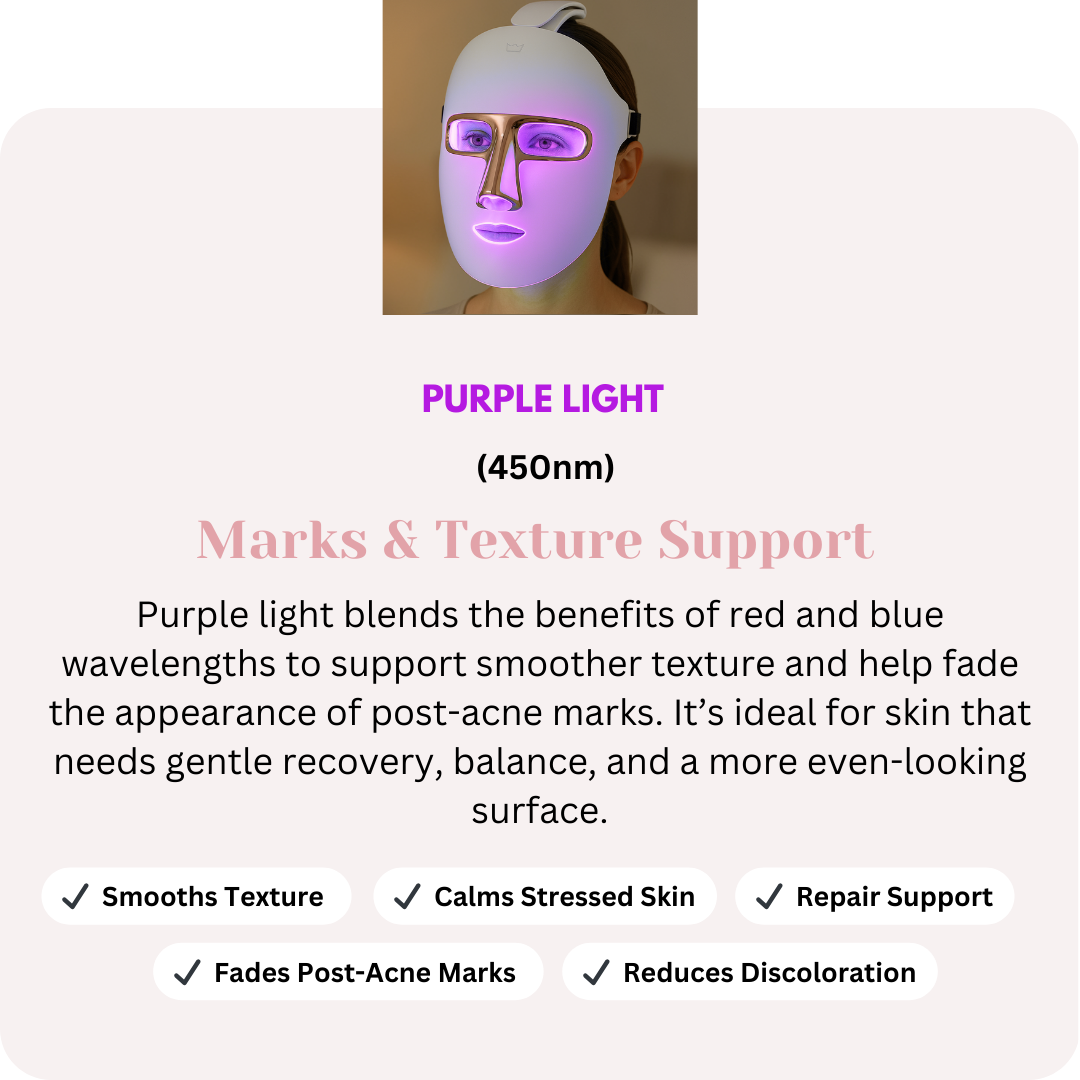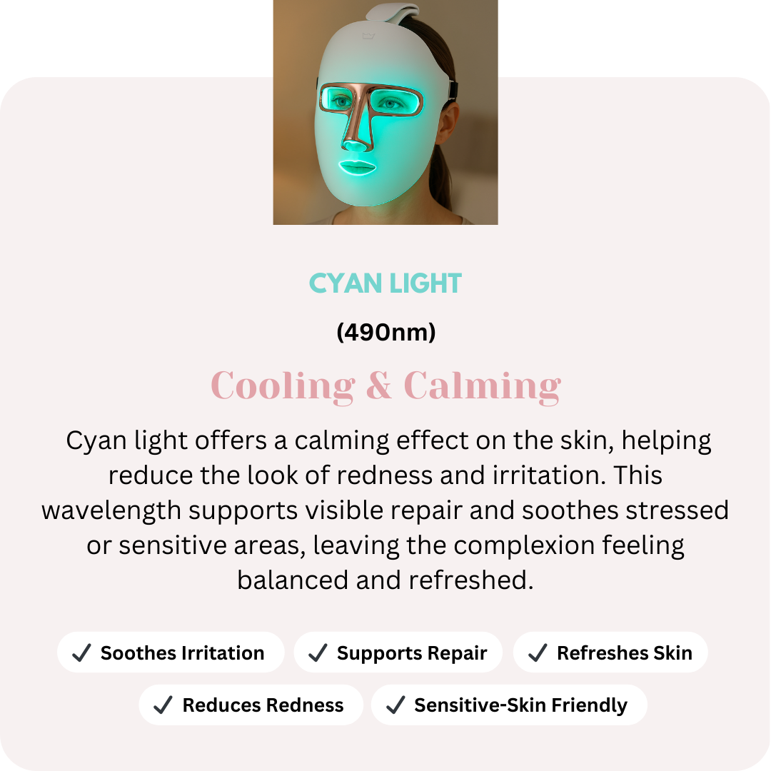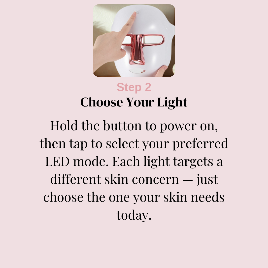 Each LED mode targets specific skin concerns — supporting collagen, improving the look of pigmentation, and calming inflammation for balanced, radiant skin.