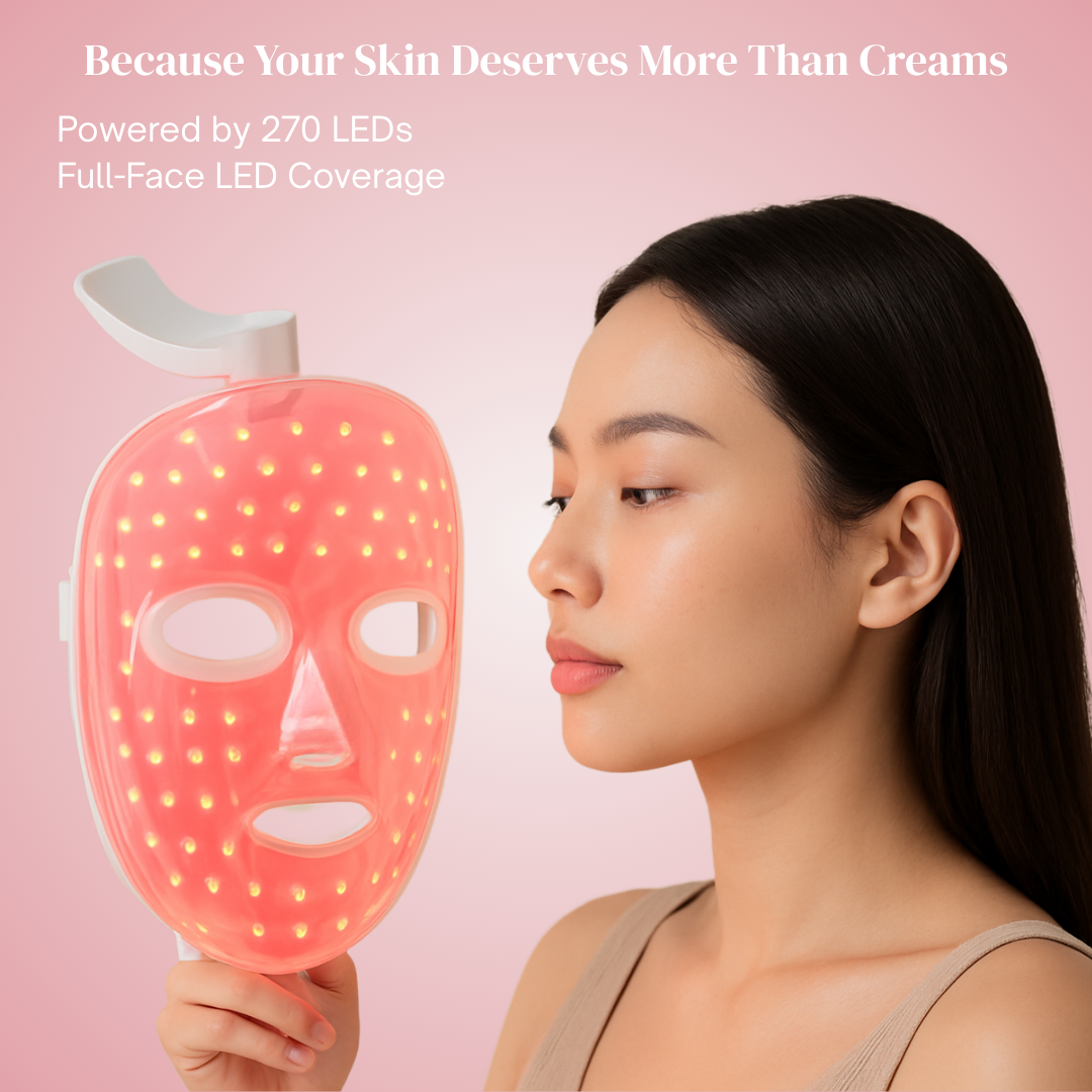 LaviamRay™ is built with precision LED wavelengths and 270 LED chips that deliver even, full-face illumination. Each of the 7 LED modes targets different face concerns — from dullness and uneven tone to breakouts, visible pores, and early signs of aging — helping support clearer, smoother, and more radiant-looking skin over time.