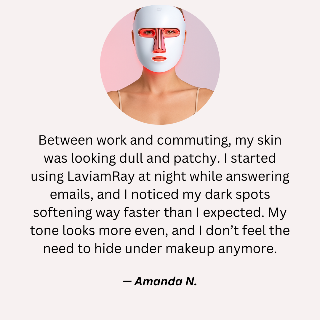 LaviamRay™ is for anyone ready to actively address visible skin concerns like wrinkles, dullness, uneven tone, breakouts, large pores, and early signs of aging — without clinic visits or complicated routines.