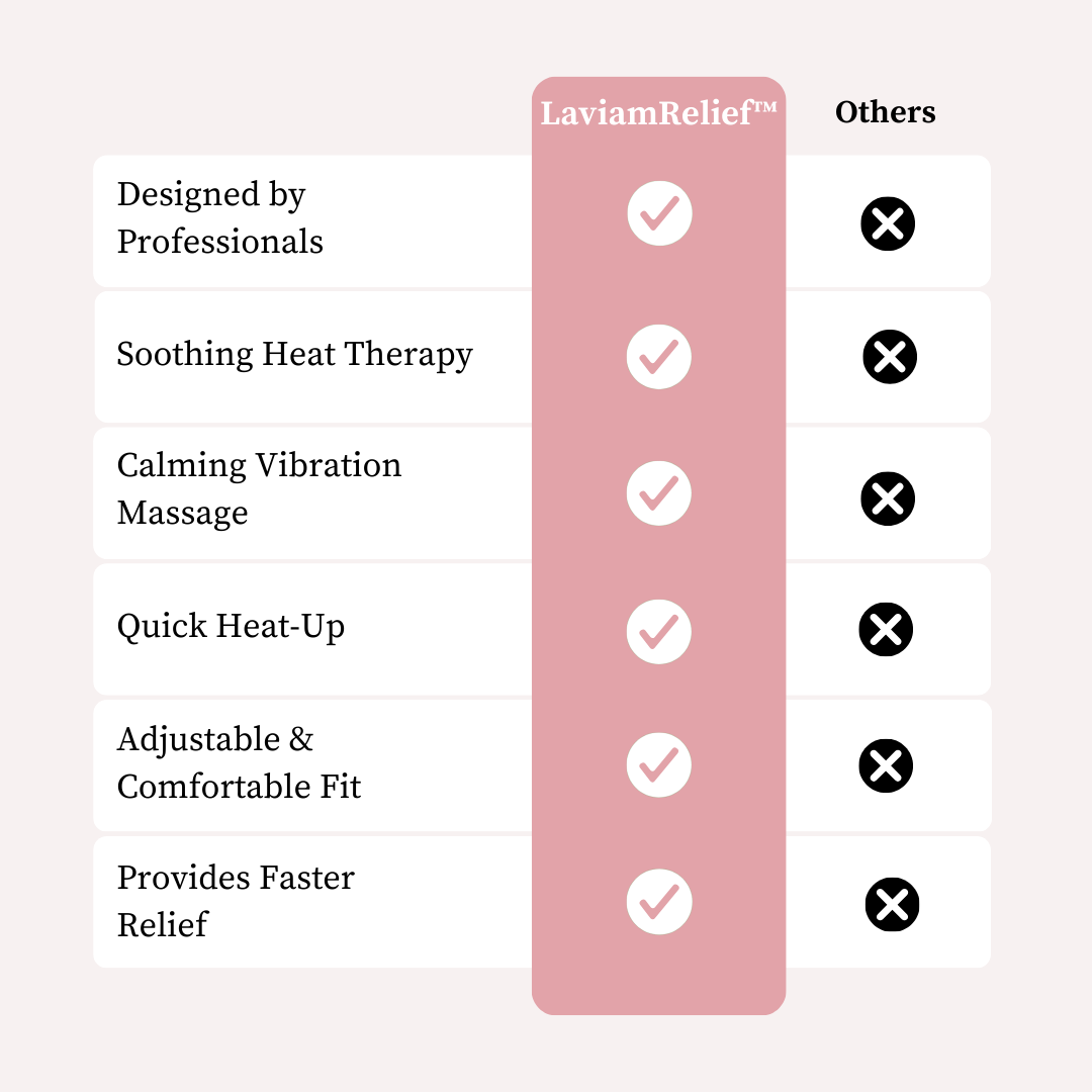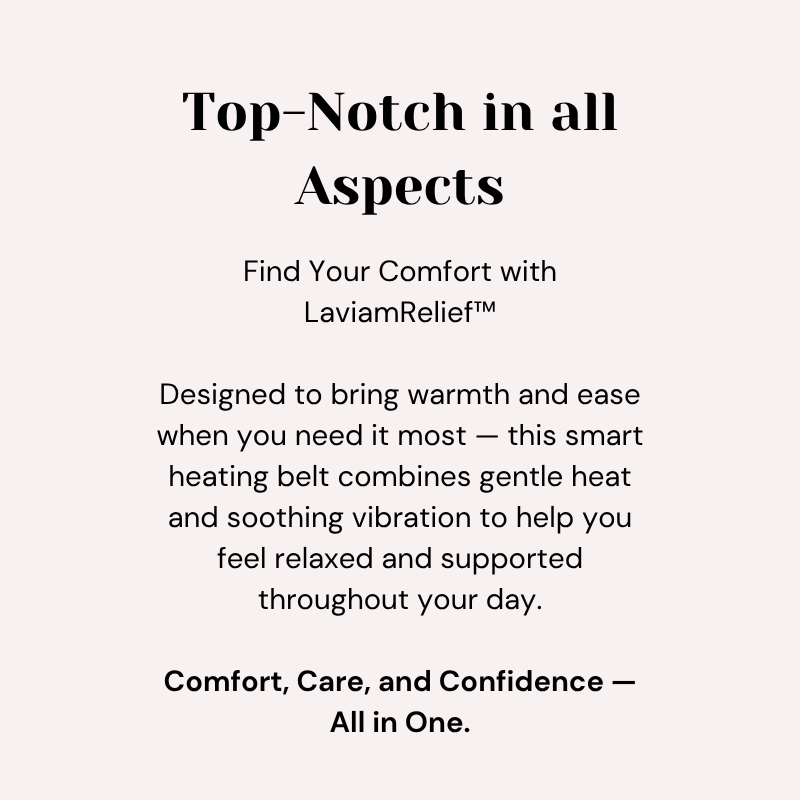 LaviamRelief™ combines two proven comfort therapies — gentle heat and soothing vibration — to ease cramps safely and naturally.