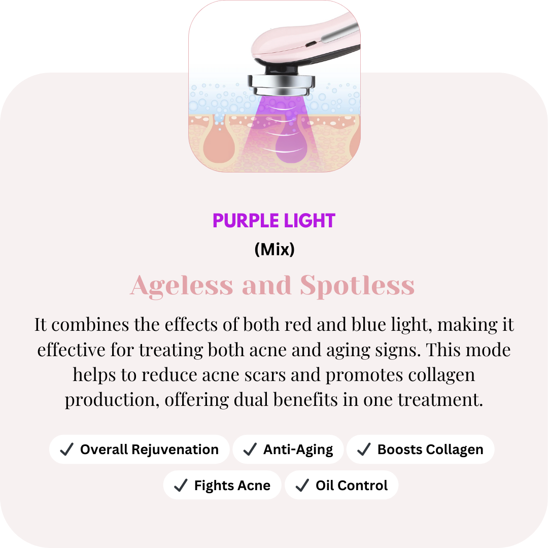 Each light targets specific concerns, boosting collagen, reducing pigmentation, and inflammation for total rejuvenation and radiance
